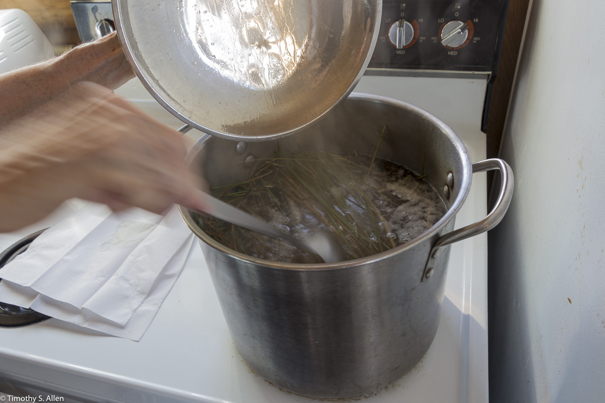 My plan for Fire Island was to make handmade paper for my artwork from the local plant waste materials, harvesting leaves and bark in a sustainable way so as not to harm any living plants. I used four plants that I collected and prepared on Fire Island. The vegetation for papermaking at Watch Hill is very limited, and I could find no trees that I could get the bark from to make paper. I did find many long leafed beach and marsh plants and was able to use the leaf plant fibers. The most abundant plant is Phragmites australis, or common reed, that is considered invasive. For my handmade paper, I used Phragmites, beach grass, Iris leaves and eel grass (seaweed). In this book I have outlined the recipes for making paper from each of these plants and included a sample of the handmade paper for that plant.