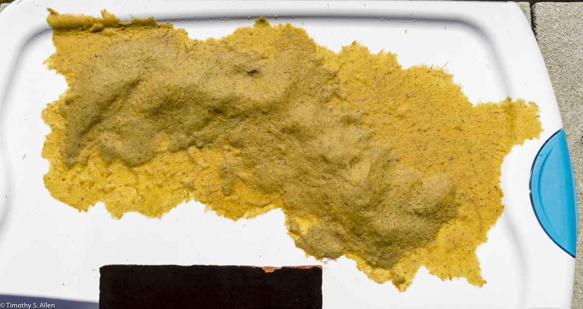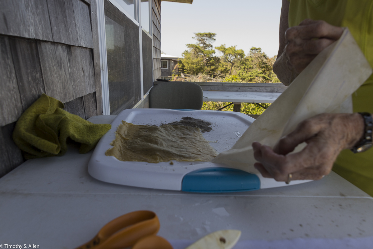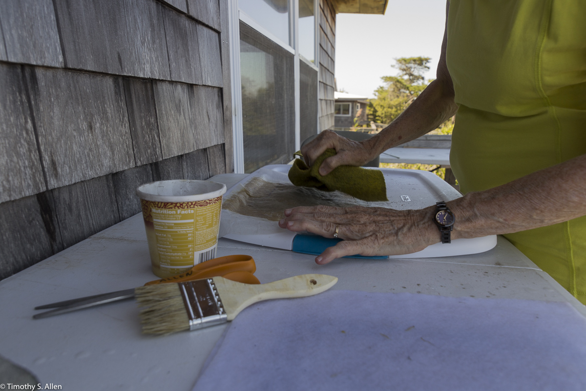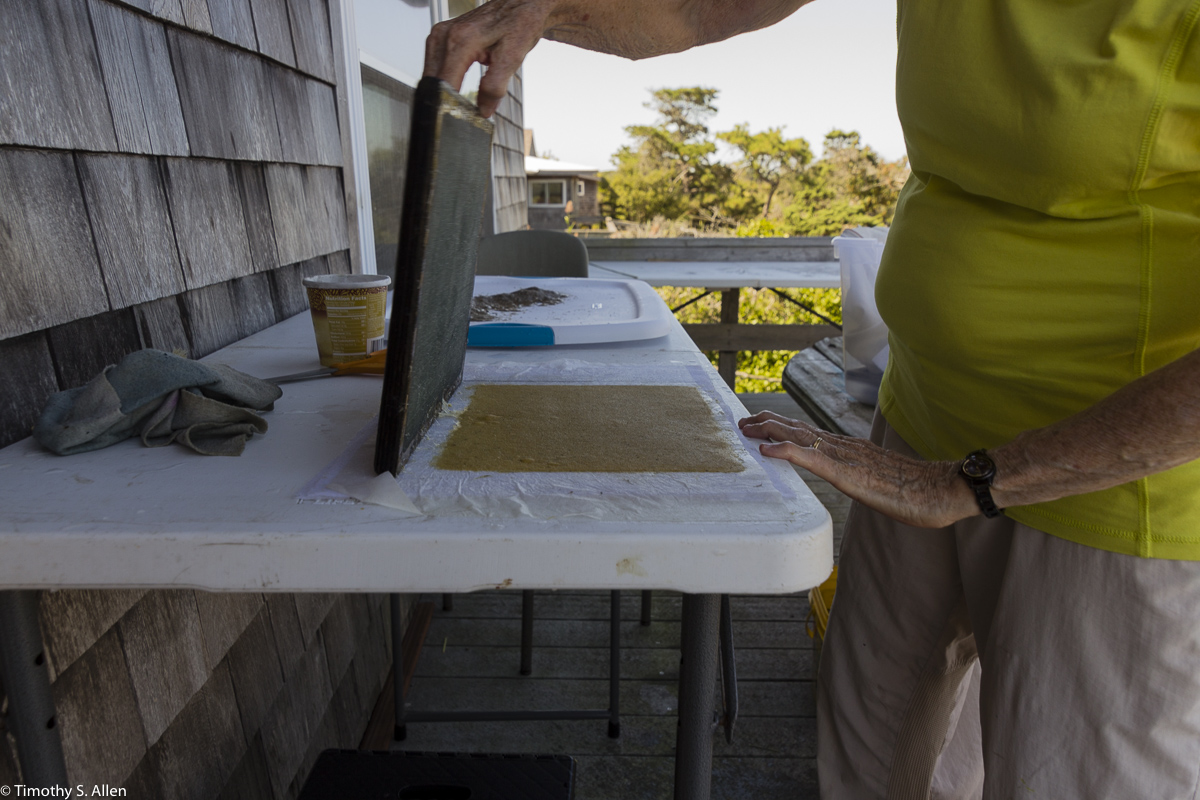Fortunately I have an artist friend, Marcia Widenor, who lives in Sea Cliff on Long Island, and she helped me get together the things I would need for the residency. She let us borrow some sheets and towels and also buckets, plastic bins and stainless steel cooking pots. I brought all the other necessary items for hand papermaking in my suitcase. I am used to setting up a papermaking studio with minimal equipment and supplies and using what I find on site. I did bring in my suitcase a blender and a wooden hammer and some powdered formation aid, a few moulds and deckles, felts and non-woven interfacing as well as some miscellaneous art materials.