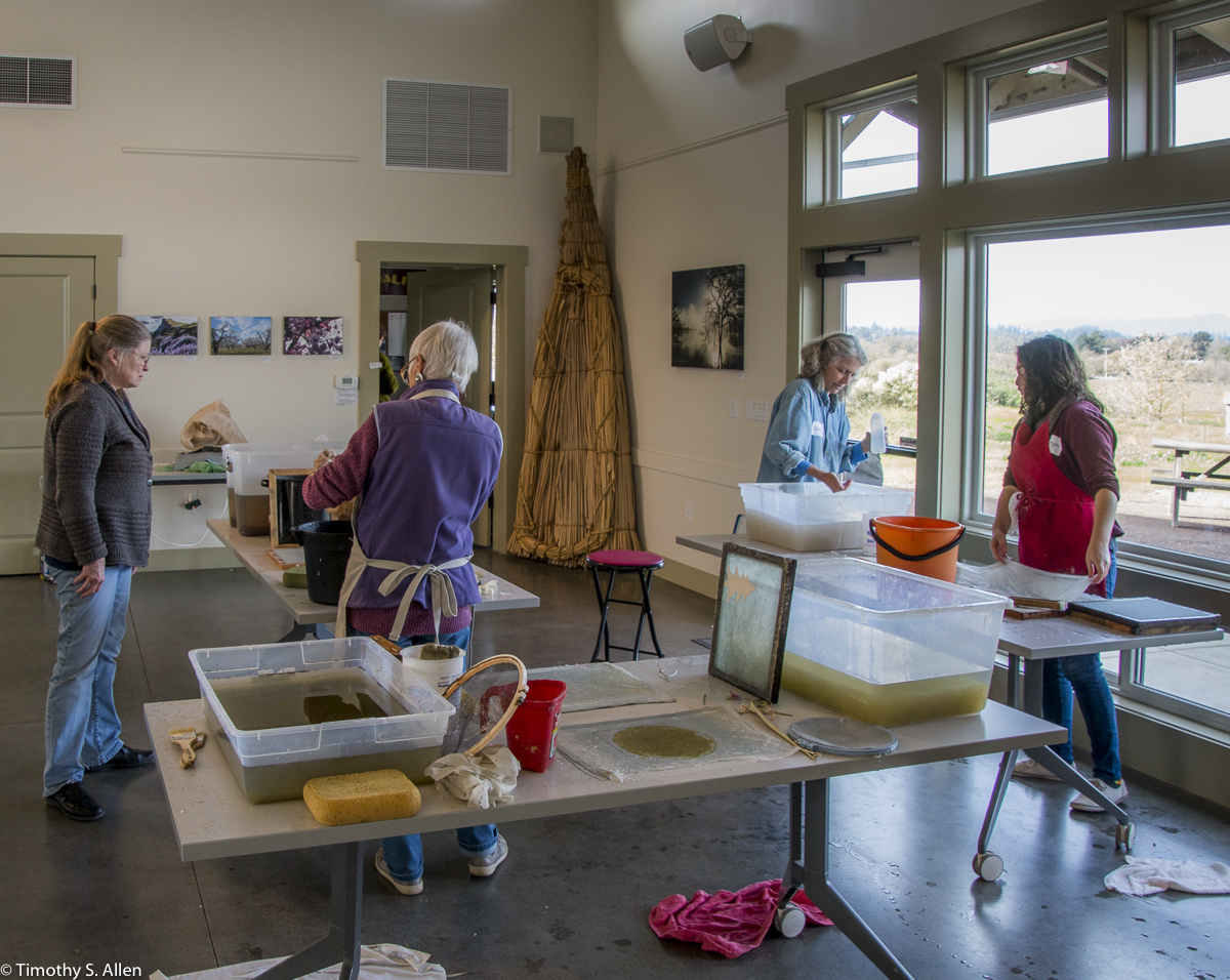 These photos were taken by my husband Timothy S. Allen (http://allentimphotos2.wordpress.com) and show some of the activities during the two days. We gathered plants, cooked them, beat them to a pulp and then formed many sheets of handmade paper to discover what great paper we could make from the different plants of the Laguna de Santa Rosa area around Heron Hall. It was a great workshop, and thanks to the Laguna de Santa Rosa Foundation and all the very creative participants!