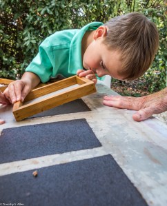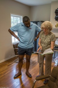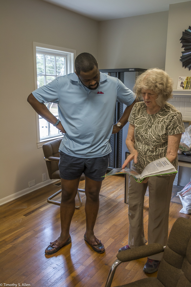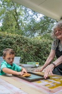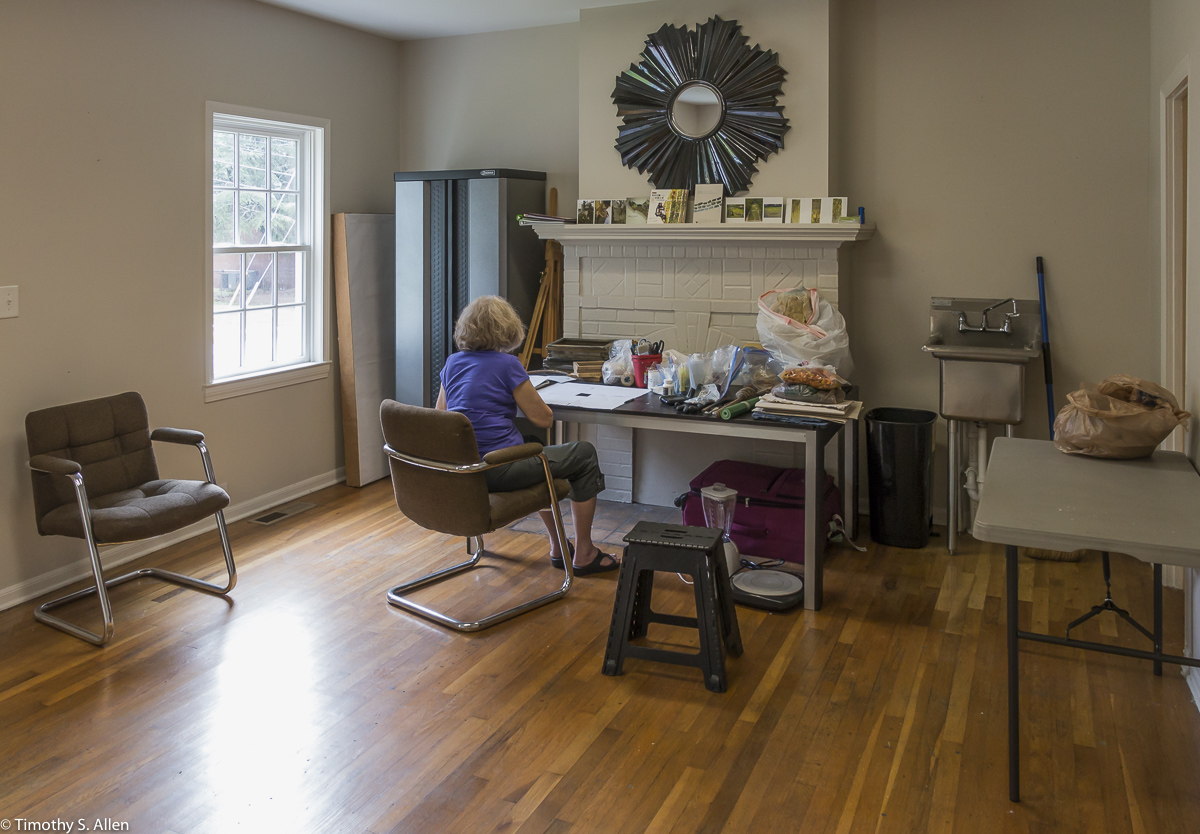 Andrew McCabe, a Newnan Art Rez board member, came by to visit and looked at some paper sample books and helped us to set up the outdoor studio working area at Gray Cottage.