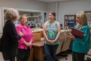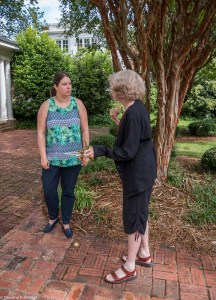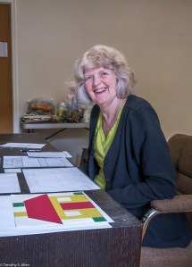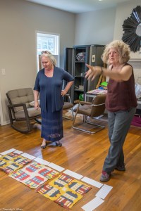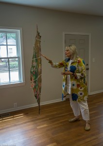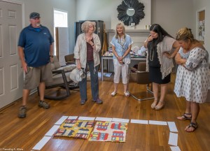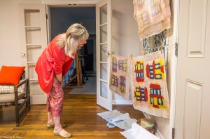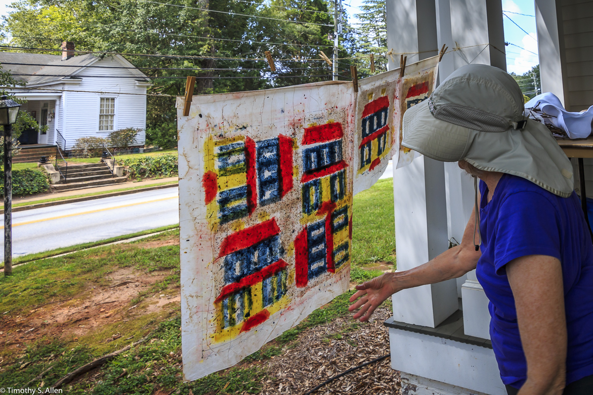 Bette Hickman, Newnan Art Rez board member, looking at a quilt block drying inside the Gray Cottage