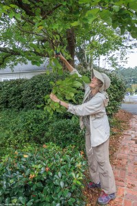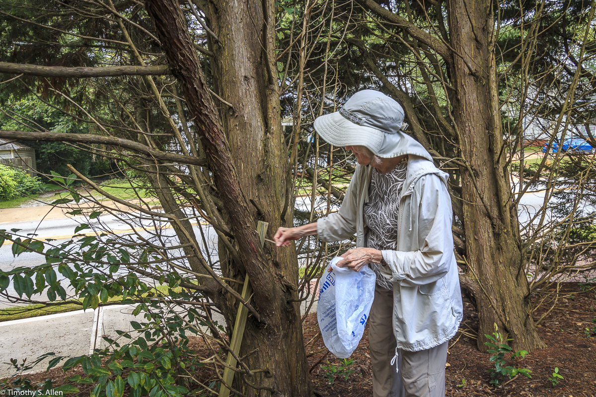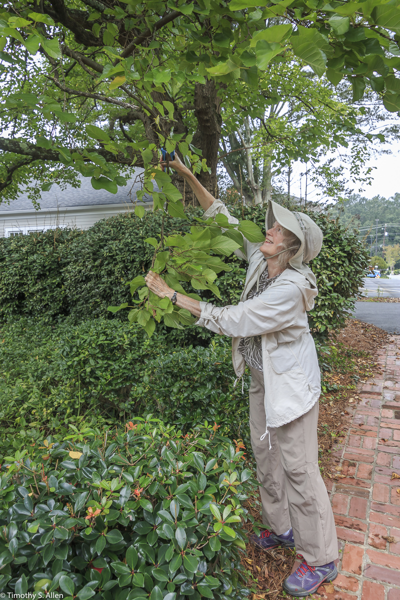 Gathering some cedar tree bark for papermaking in Newnan