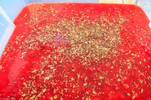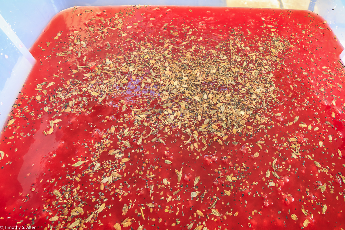 Red wildflower seeds added to the red paper pulp for the eco quilt