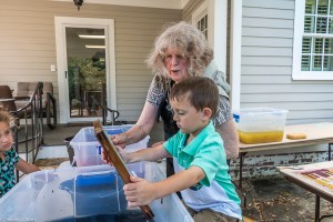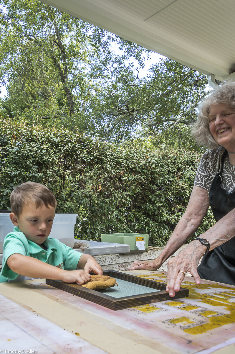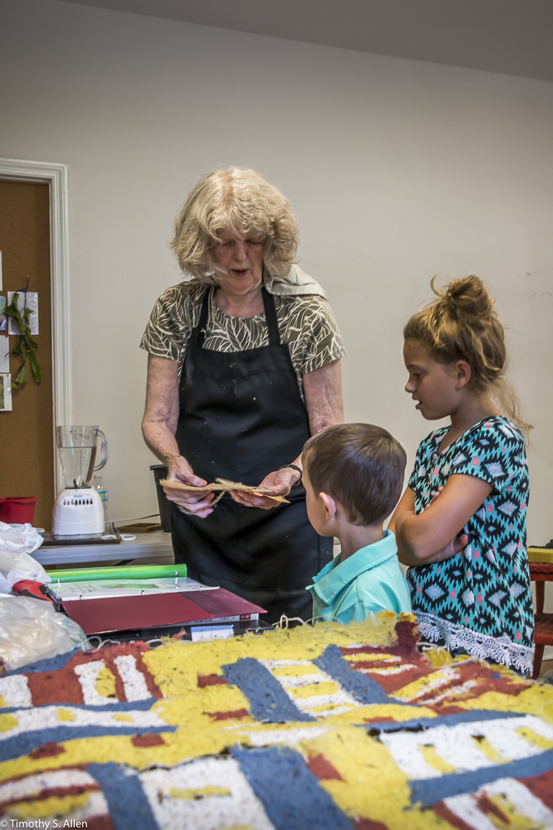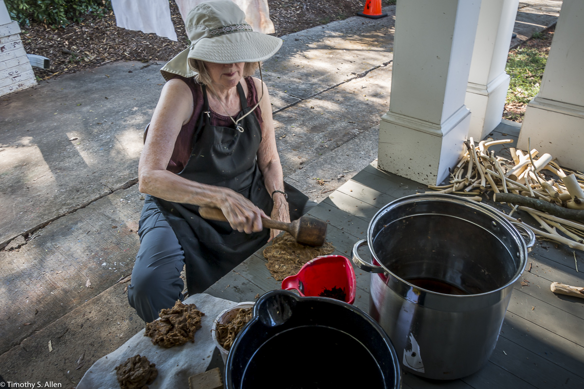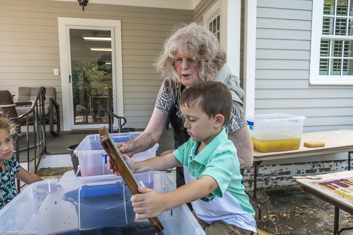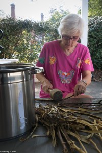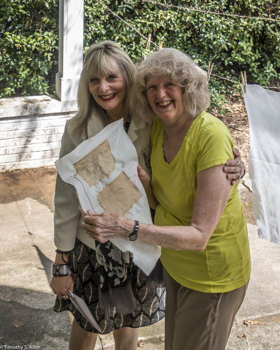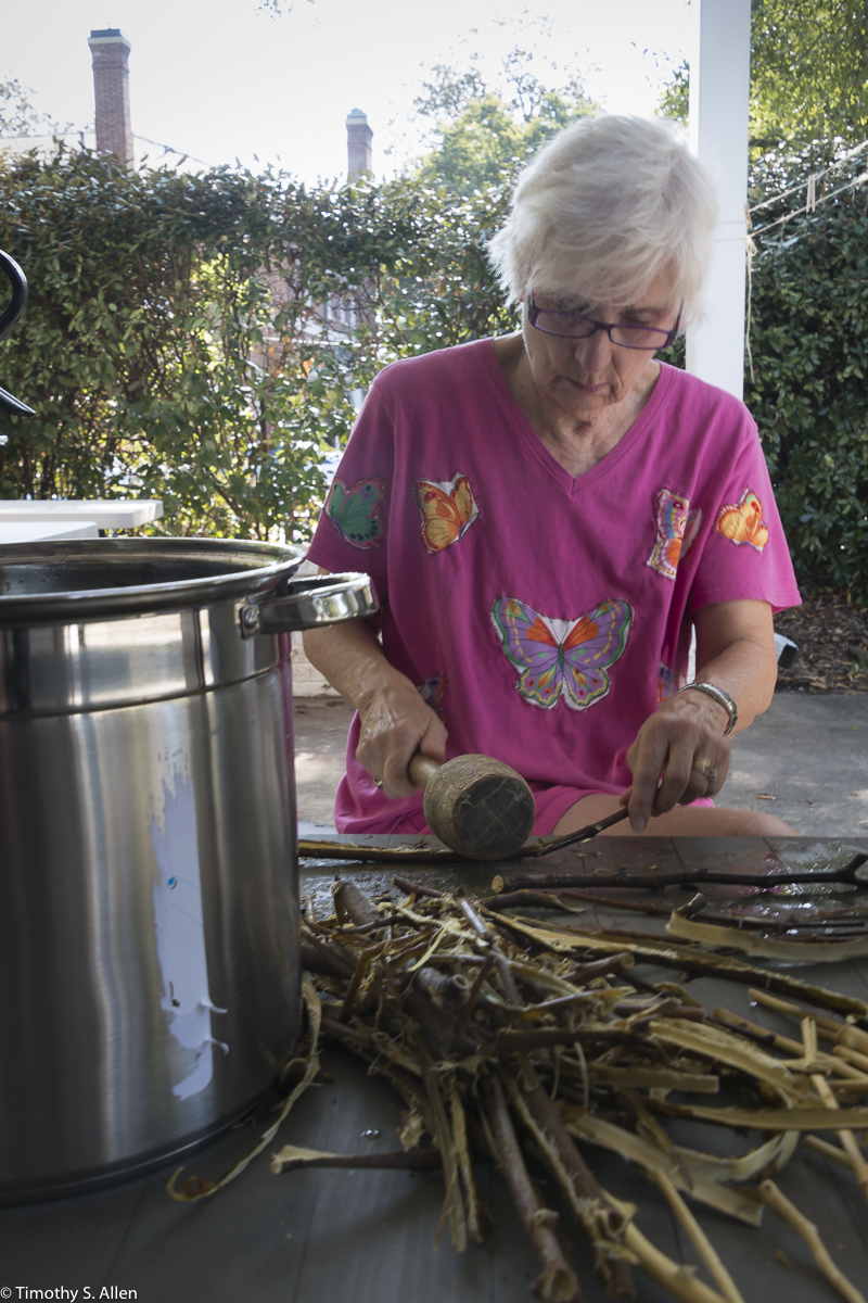 My sister in law Judy Berry beating twigs from a paper mulberry tree to get the bark for papermaking in Newnan. Many of my family members came to Newnan, and we had a family reunion!