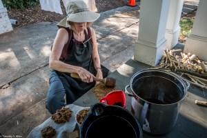 We are cooking and making paper pulp from several plants common in Newnan to add to the paper pulp: crepe myrtle bark, Eastern red cedar tree bark and red mulberry tree bark. Yesterday we gathered some magnolia tree bark, and we will start preparing it today.