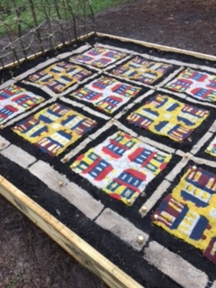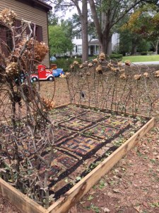 I was an artist in residence at Newnan Art Rez from August 8 to Sept. 1, 2017. We leave Newnan today, and I hope the quilt will change over time with the seeds sprouting and blooming as a living quilt for Newnan. Check back here to see photos of the quilt as it changes over time. I am hoping that local volunteers will continue to send me photos. Thank you, Newnan, for a wonderful residency experience!