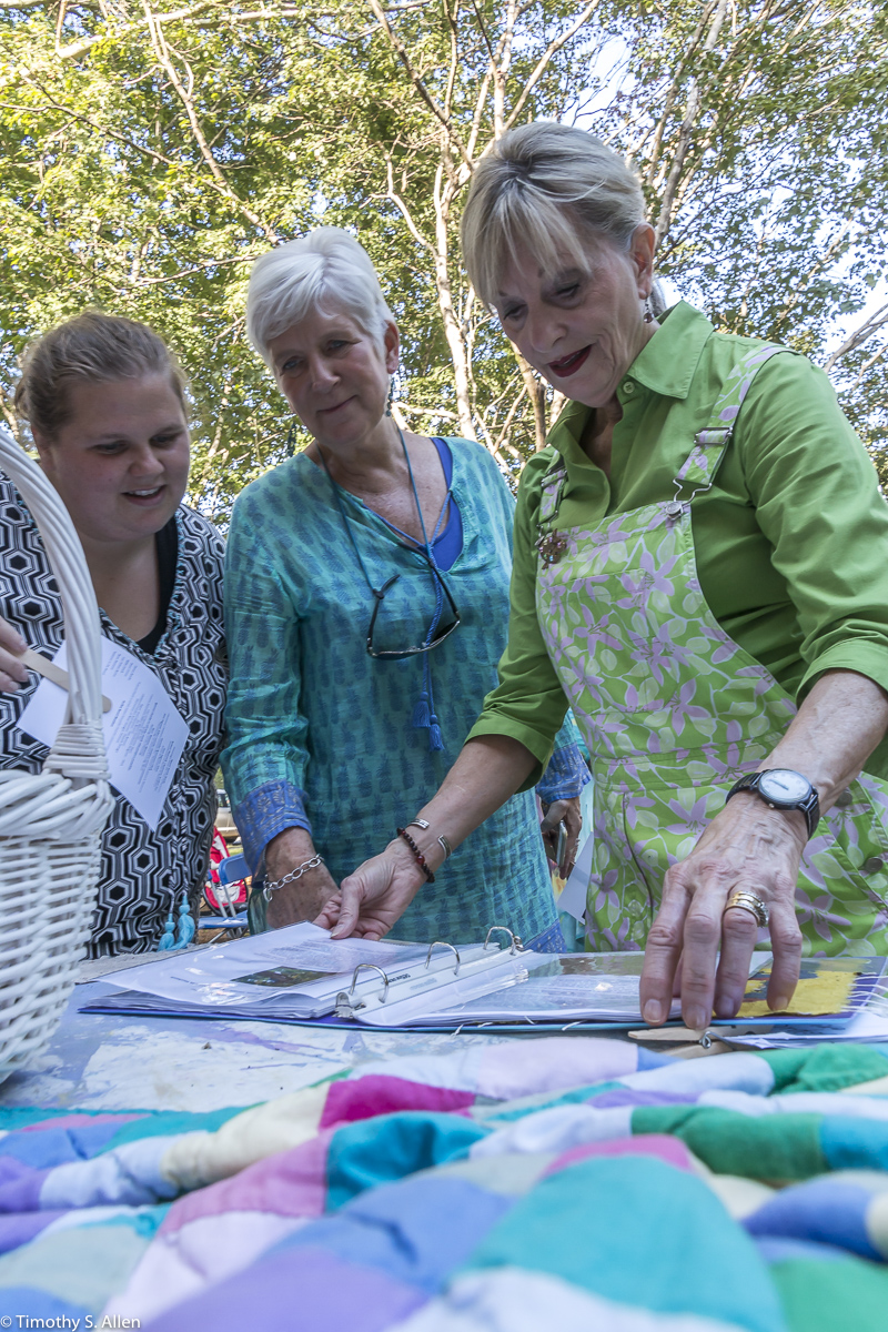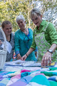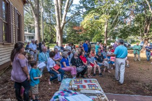 Mayor of Newnan and grand-daughters looking at the quilt squares