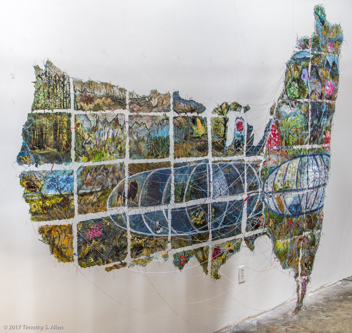 In December I have been making a new handmade paper quilt with the “flying geese” pattern that has seeds for wildflowers in the pulp. I hope to plant this quilt and make another “flower bed” in early 2018 to memorialize the terrible October wildfires that destroyed so many homes and businesses in Santa Rosa. The transformation of the handmade paper quilt into a bed of blooming wildflowers reminds us of the regenerative power of nature and creates an evolving living artwork.