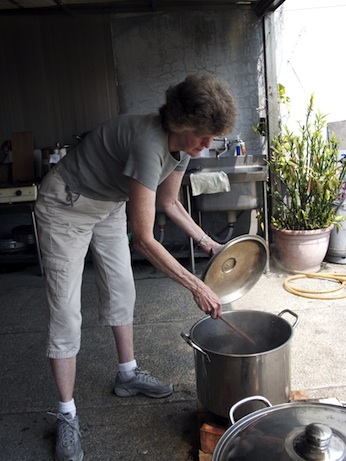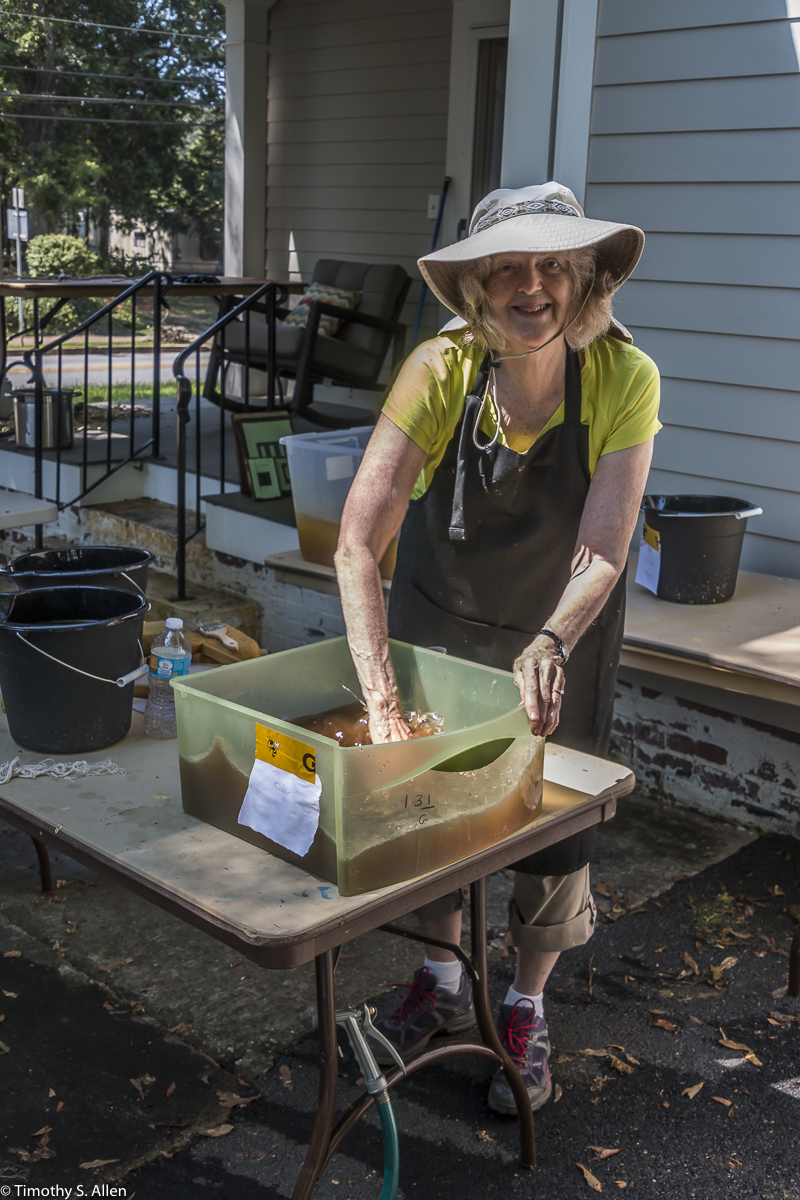 Jane making handmade paper from local plants during her residency in Newnan, Georgia, 2017