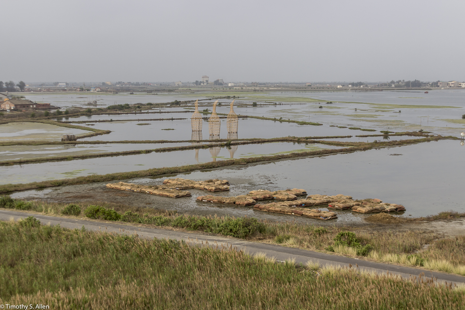 Sitka Spruce trees, detail of sculpture installation with handmade paper from Sitka Spruce bark dried on Sitka Spruce trees near Sitka Center for Art & Ecology, Otis, Oregon