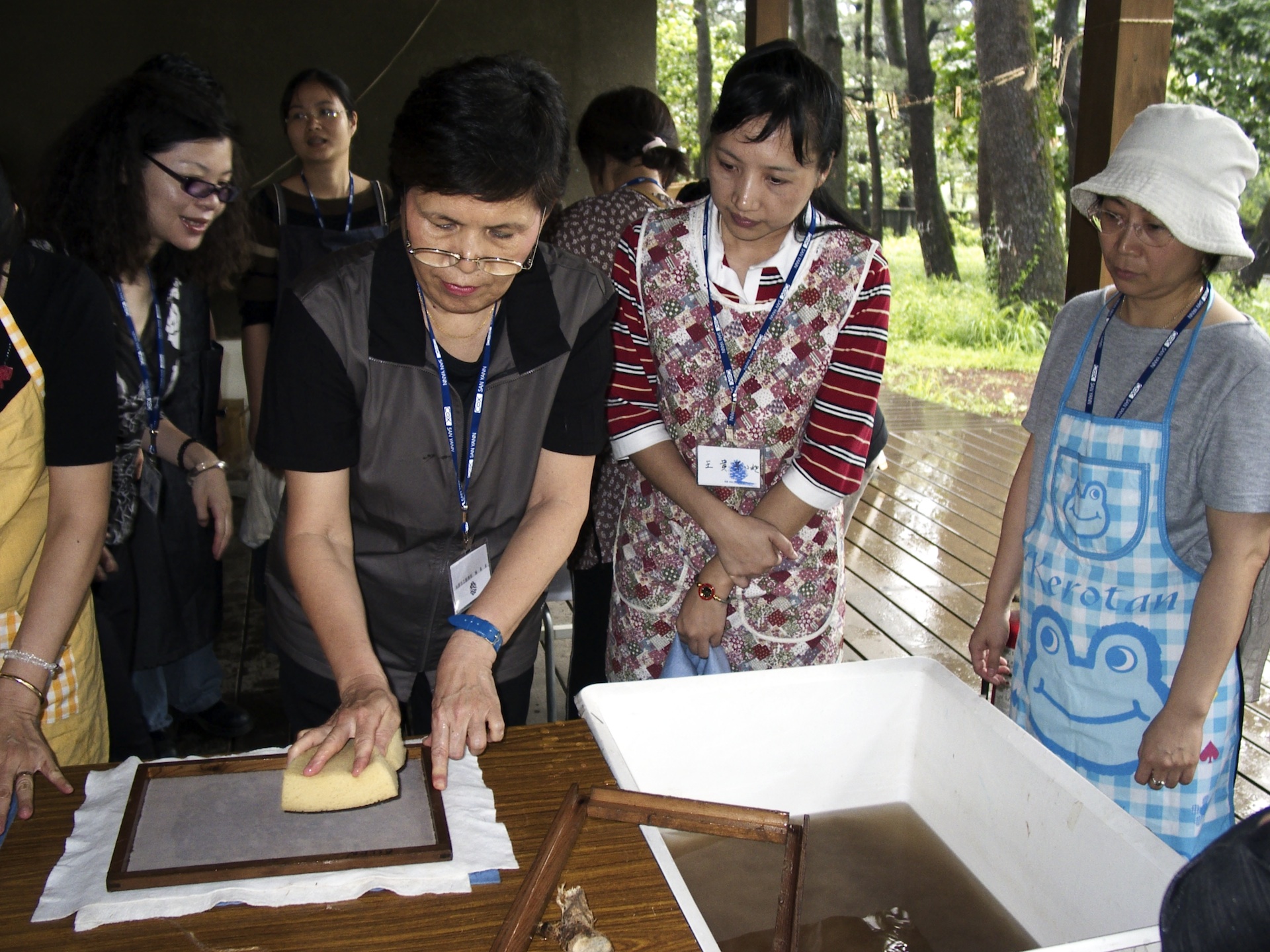 Jane conducting papermaking art activity as an artist in residence at Boston Harbor Islands National Park, Boston, MA, 2016