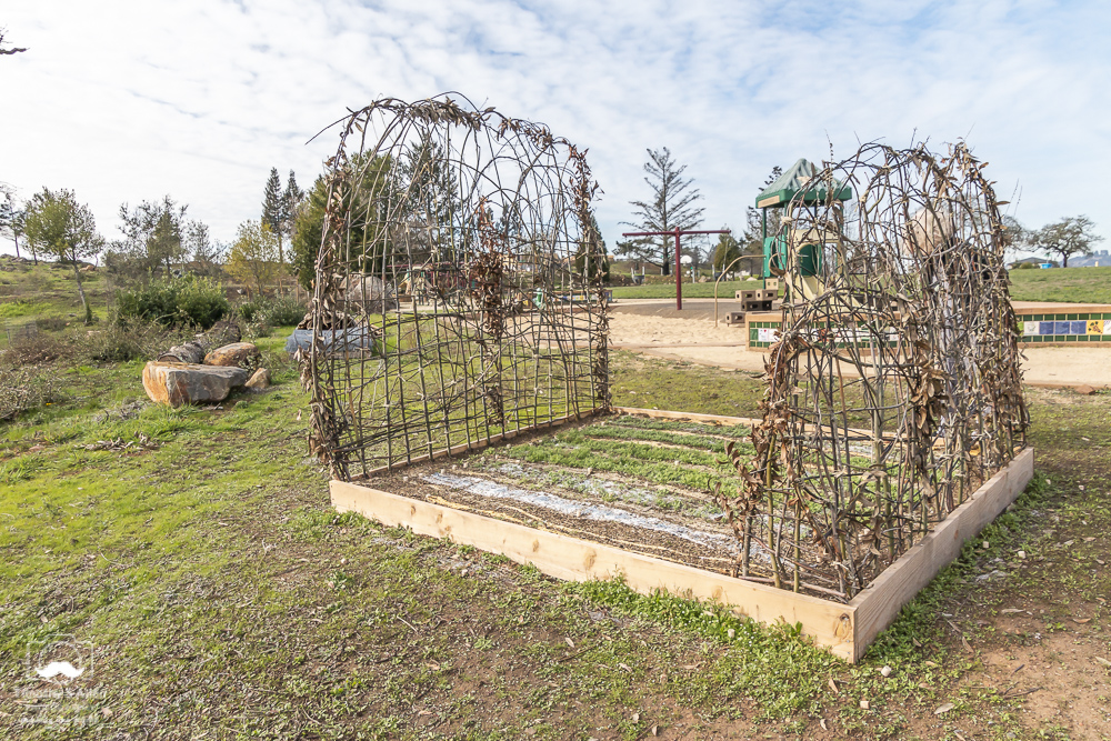 My “Living Quilt for Santa Rosa” public art installation with handmade paper and seeds for wildflowers in the pulp continues to change over time since it was installed on November 25, 2018, at Rincon Ridge Park in the Fountaingrove area of Santa Rosa. This project was one of four projects awarded a grant from the City of Santa Rosa public art department during the first round of Calls for Fire Response public art projects.  This  installation was created with the participation of local volunteers, and it is bringing new life to this area of Santa Rosa that was devastated by the wildfires of October 2017. The wildflowers should continue to grow, and hopefully they will bloom in a few weeks. The weather has been sunny and warm, and many trees and flowers are already starting to bloom in Santa Rosa, CA.