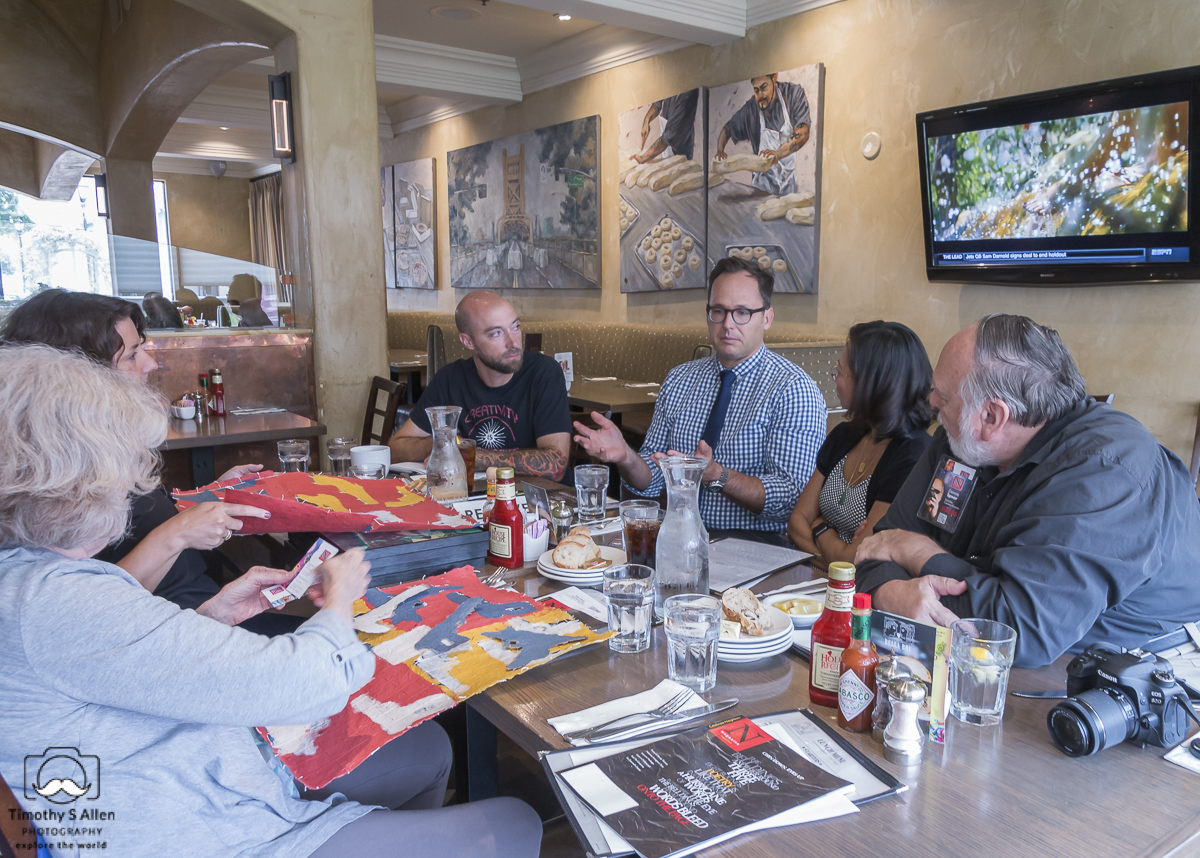 Jane meeting with Natomas Charter School teachers, principal and Sacramento officials to plan the “Guns Into Flowers” art project