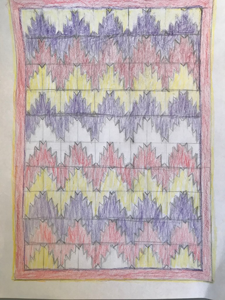 Here is an image I found on the internet of a traditional quilts in the “Delectable Mountains” or “Peaks and Valleys” pattern.