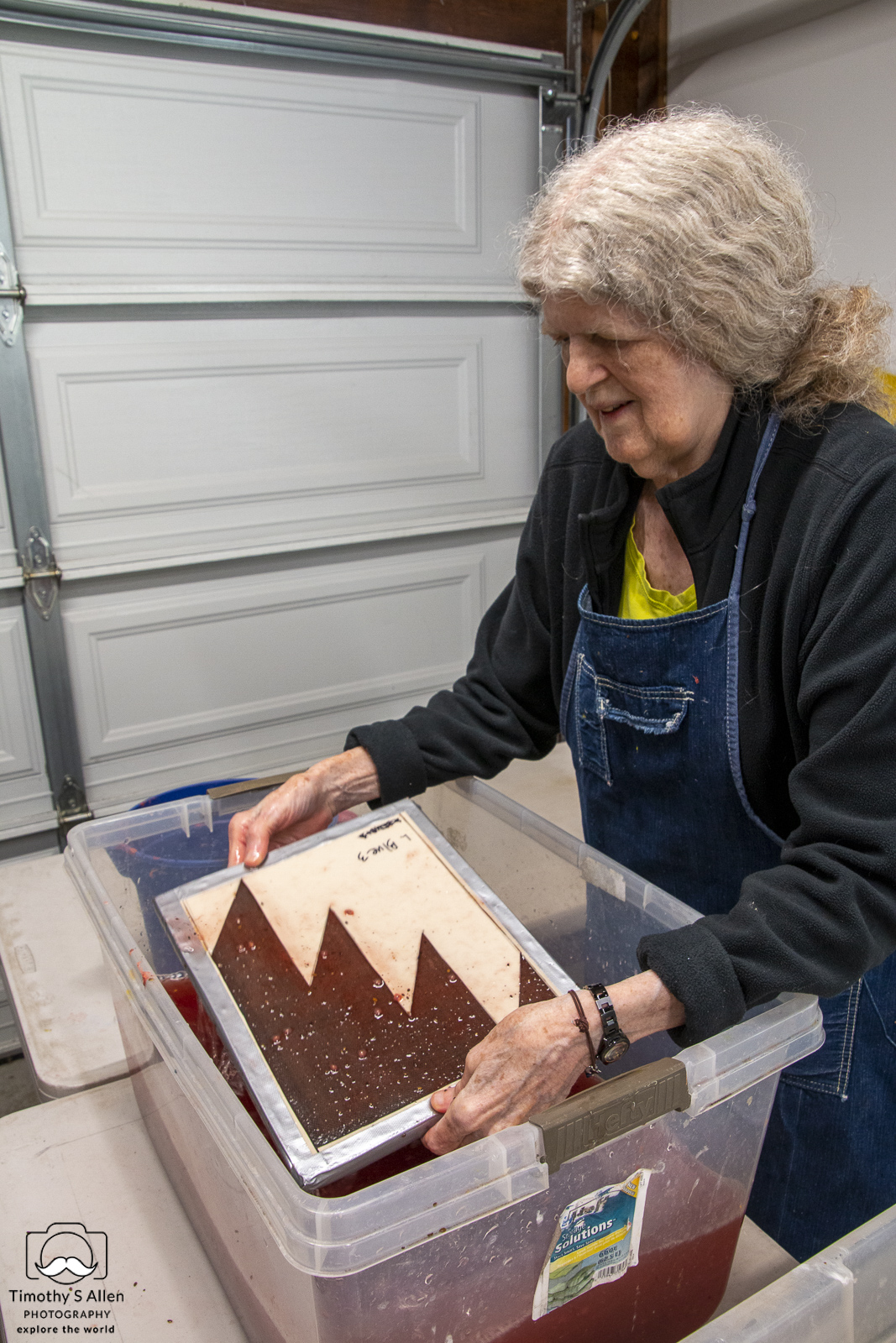 Keep watching this Blog to see more photos of the Steckborn “quilt” in progress and also some links to videos that I will post on YouTube to show me creating it in my Santa Rosa, California studio. This is one unit of the quilt made and dried, and I will make 25 of these!