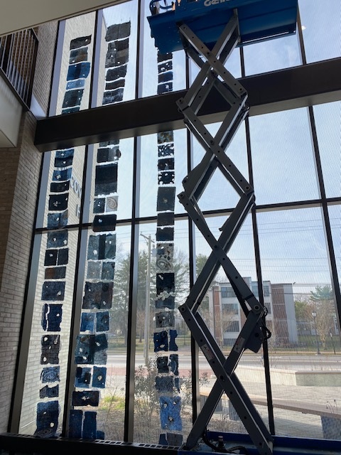 Check back here for updates and photos of the finished installation of “In Deep Water” at Rowan University. The artwork will remain on view at Discovery Hall in the Lobby area and is open to the public during regular campus hours through the remainder of the semester.