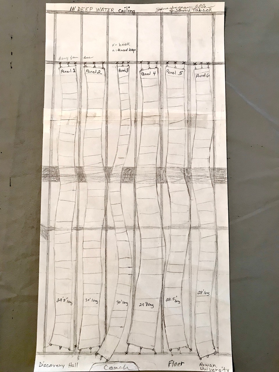 Sketch/diagram for “In Deep Water” installation at Discovery Hall, Rowan University