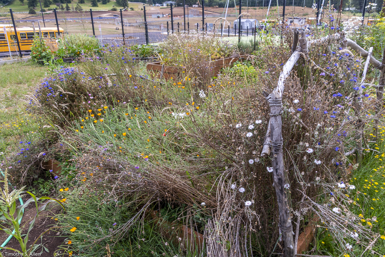 It is great to see how this “quilt” has changed over time and to see so many wildflowers that were in the handmade paper quilt blocks still blooming! The photos below were taken by my husband Timothy S. Allen when we visited the Nestucca Vally School and viewed the art installation in the school garden on Monday, August 8, 2022.