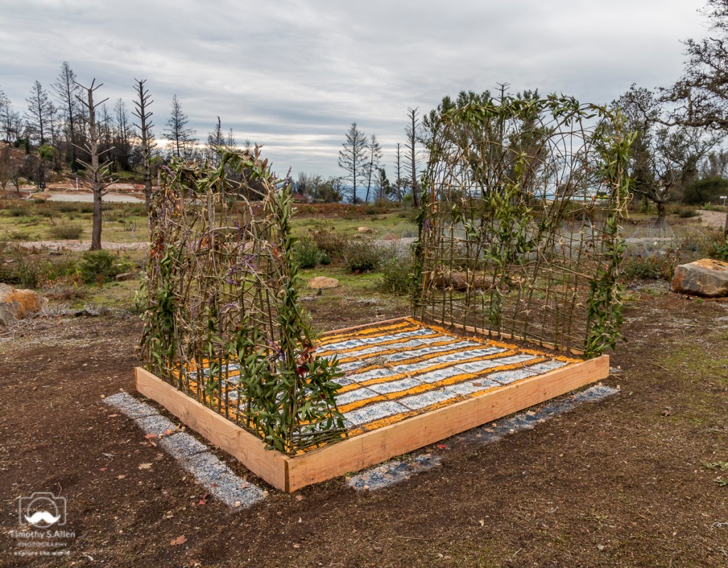 My art aims to foster public awareness of environmental issues, with collaborative and participatory processes in mixed media multi-part installations. I use all natural and biodegradable materials such as handmade paper I make from local plant waste materials and seeds to produce continually evolving artworks that transform with nature as a partner. In my recent “Living Quilts” outdoor installations, the handmade paper dissolves over time becoming compost to nourish the earth, and the seeds sprout and grow to produce food and habitat for wildlife as well as aesthetic experiences for humans. The sculptural structures with my living, growing installations are made of wood and branches and last well for many years, and the artworks continue to change and evolve with time. These works comment on our vain hope for permanency in art and our desire to conquer nature rather than exist in harmony with the earth. With recent projects I am focusing on water and our current climate crisis, bringing attention to our dire circumstances, with too little water and too much water, and projecting hope for a better future.