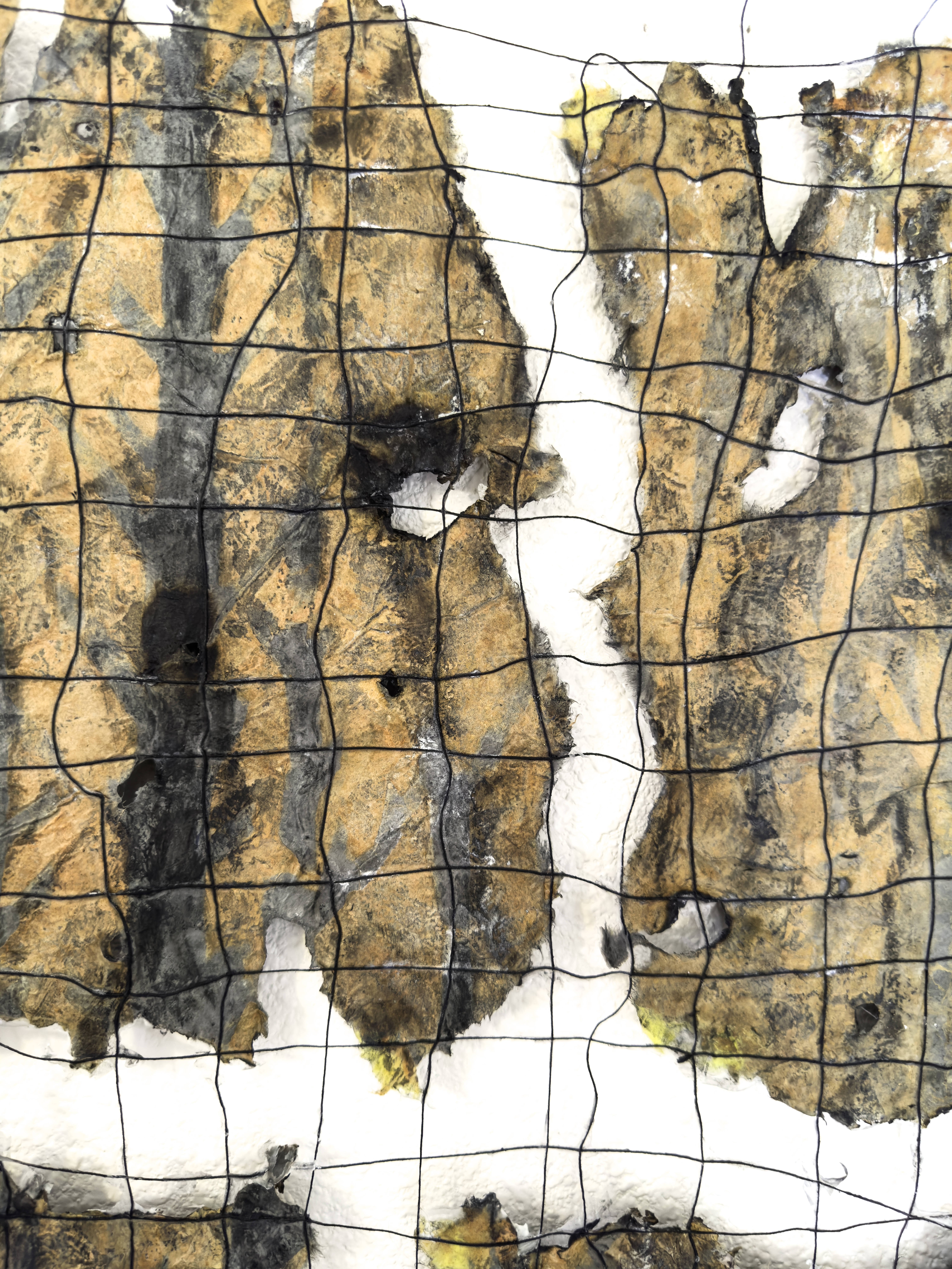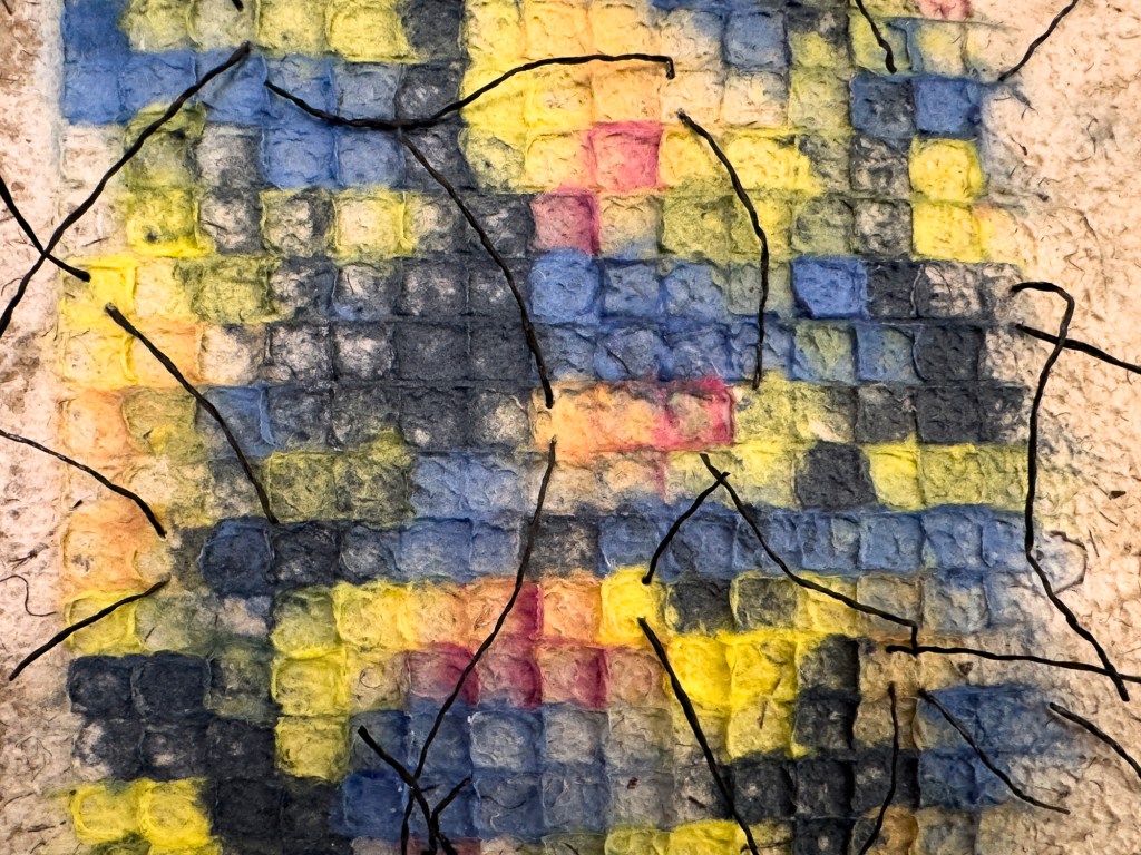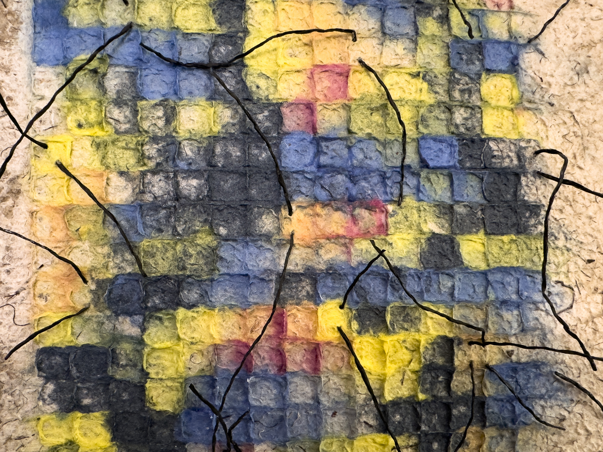 Jane Ingram Allen, detail of “Grid Play 2024”, handmade paper, dye pulp, thread