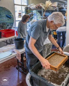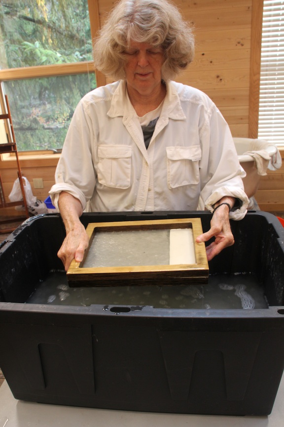 I will also be in Benica on Saturday, June 6, at the gallery to do a public art installation I am calling “Building Community – Benicia Houses” that will involve some hands-on public participation papermaking to create over 100 small houses and arrange them for a public art installation in the gallery’s back garden space. Volunteers who have taken my papermaking workshops will be helping participants create their own “house” for the installation that will remain on view until June 21. The papermaking activity will run from 11 – 4 on June 6. There will also be many other activities that day in downtown Benicia with lots of art to see!